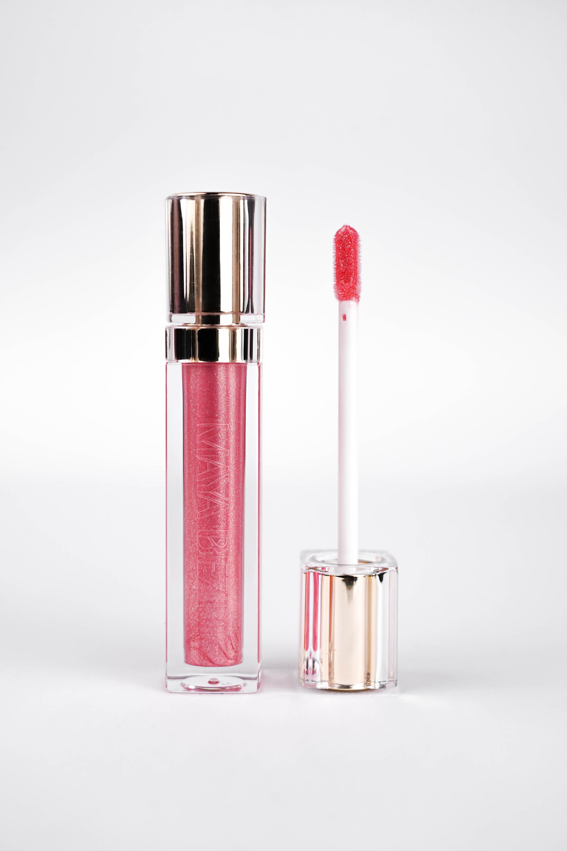 A rich pink with subtle shimmer and a glossy finish